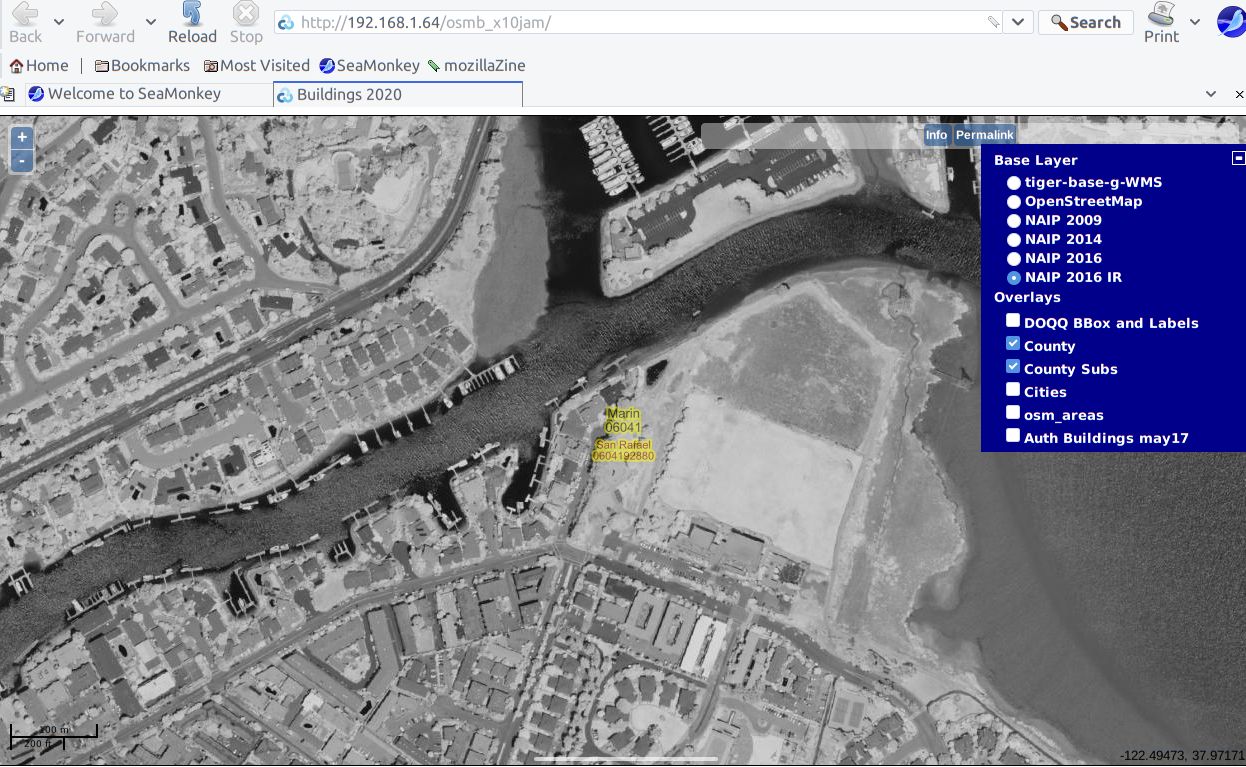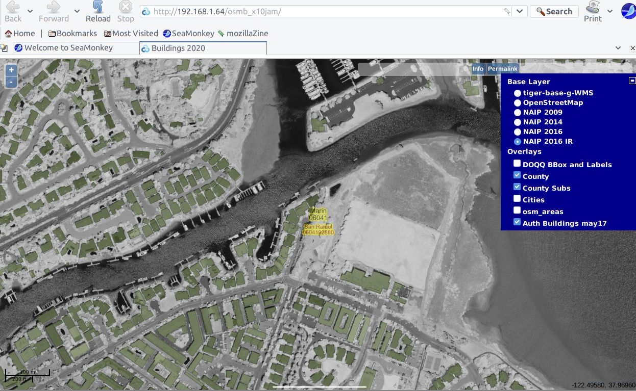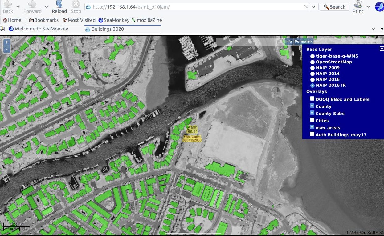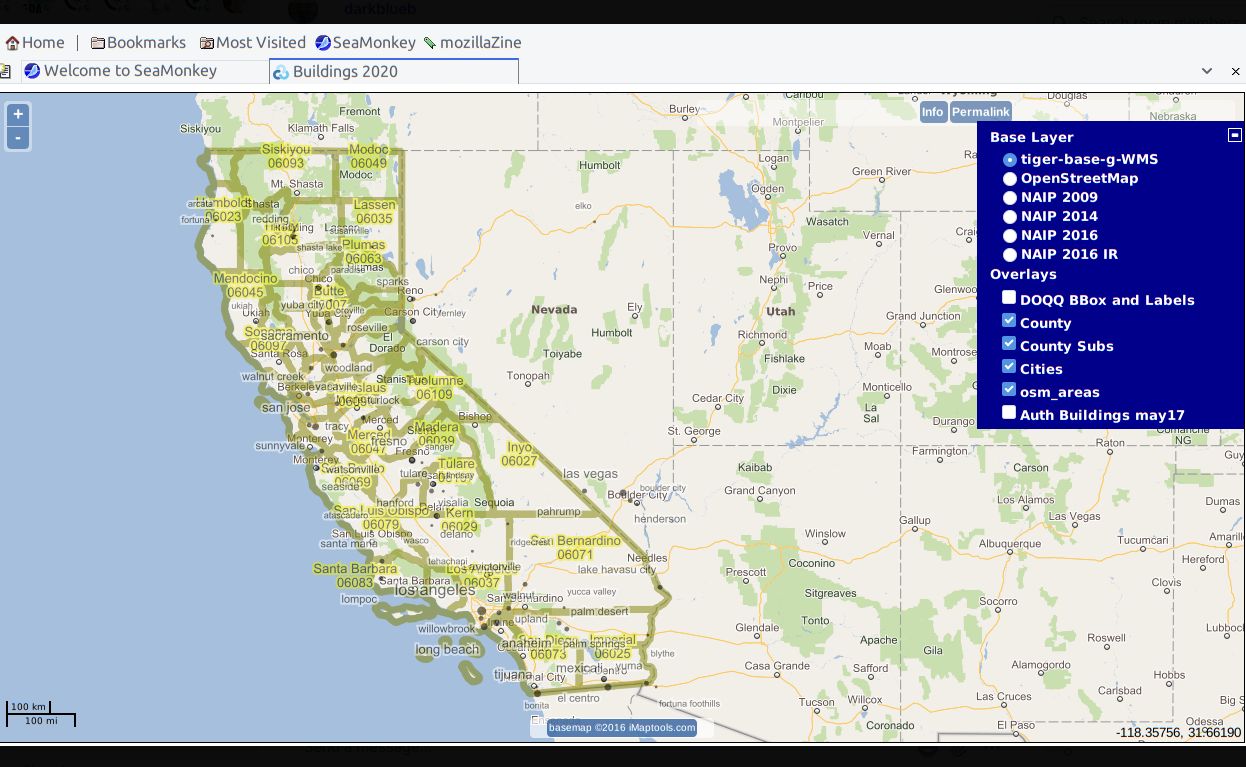 The main concept is to show the inventory of 2D building footprints for California, compare to real ortho-imagery, and compare to other maps.. so I can zoom in to “Santa Rosa” city north of here, and see the buildings, and the satellite imagery for that area.. ( on a date before 1/3 of the city burned to the ground in 2017 )